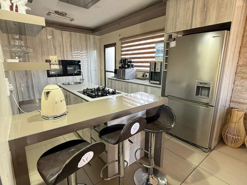 Relaxed family living in Cimbebasia with convenient neighborhood access, open-plan modern kitchen and braai entertainment patio — includes bachelor flat, two bedrooms, two bathrooms and single garage.