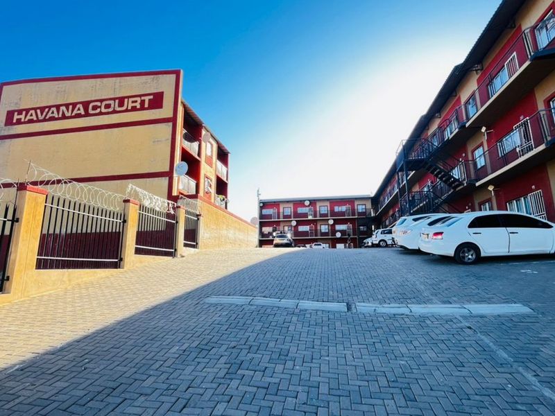 Convenient city living in Havana Court, Windhoek — steps from Usave for effortless shopping. Spacious 61 m² apartment with two bedrooms, one bathroom and secure covered parking.