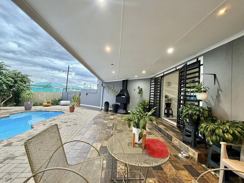 Transform this prime Hochland Park residence near schools and shops with a dedicated entertainment and indoor braai area. Three bedrooms, two bathrooms, single garage, plus open parking.