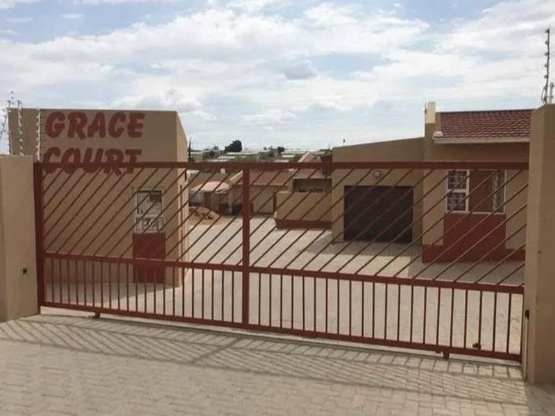 Easy-living townhouse in Khomasdal's Grace Court offering relaxed open-plan lounge and kitchen, private courtyard and carport, gated security for peace of mind — three bedrooms, two bathrooms.