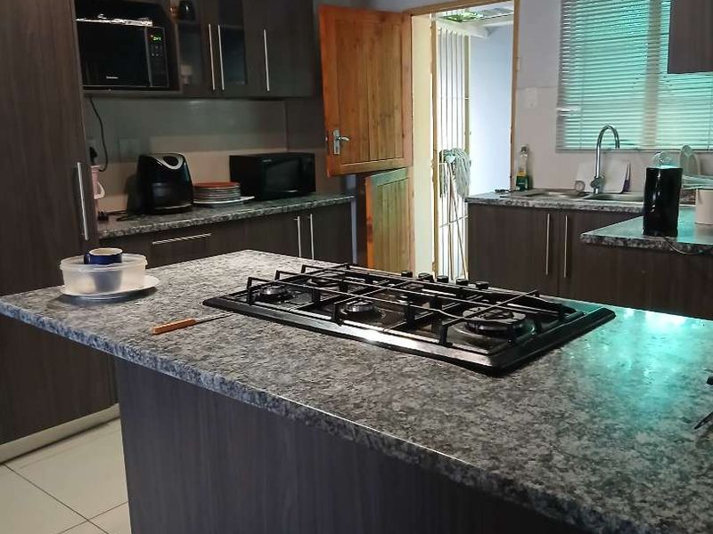 Entertainer's family home in Khomasdal, Windhoek — roomy indoor-outdoor living with built-in braai and spacious yard, secure electric fencing; four bedrooms, three baths and double garage.