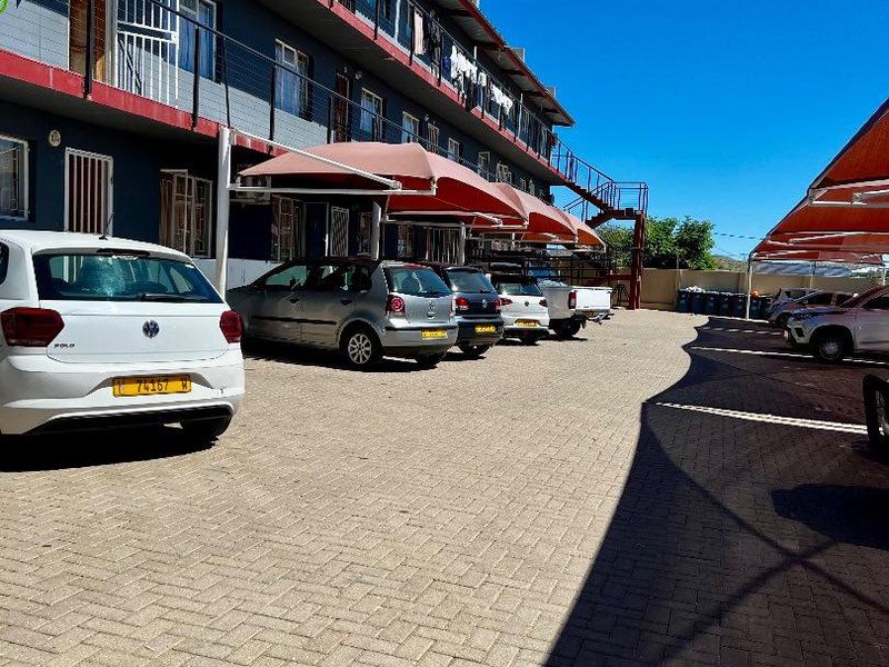 Enjoy convenient ground-floor living in Omarunga Court, close to shops and services — a larger-than-average two-bedroom with prepaid electricity, instant N$150,000 equity and covered parking.
