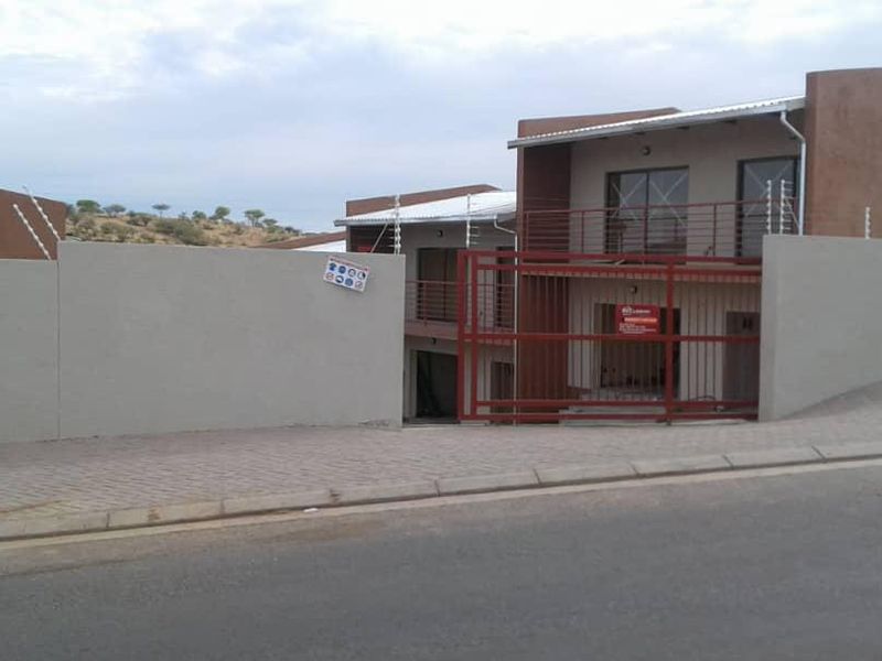 Relaxed Otjomuise living in a first-floor townhouse within a secure complex, offering easy-care lifestyle and community amenities — two bedrooms, one bathroom, levies N$1,500.