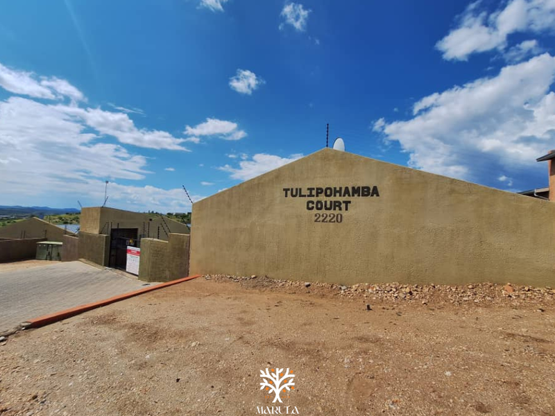 2-bedroom, 1-bathroom sectional title unit in Otjomuise, 65 m², with covered parking and security features. N$800,000.