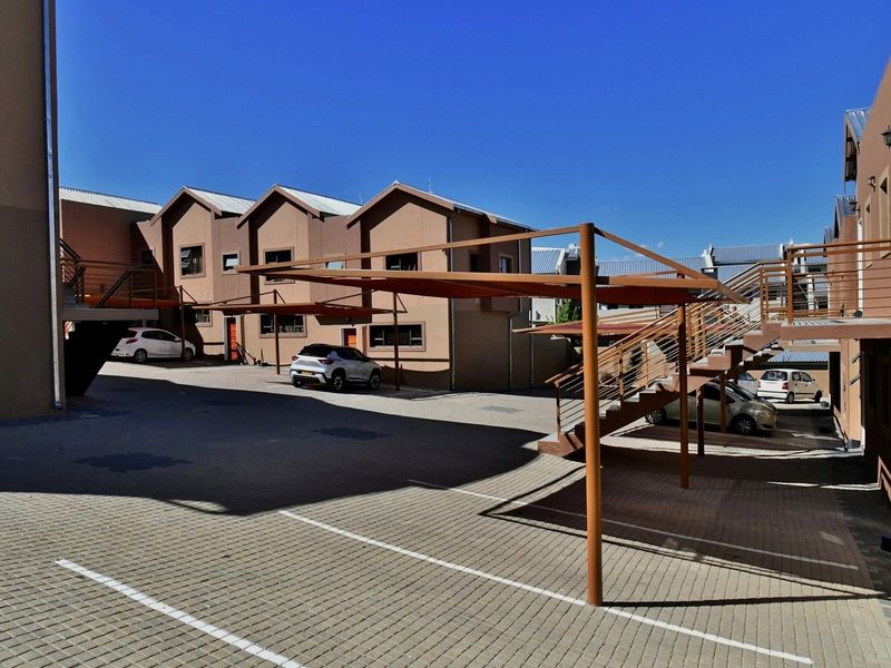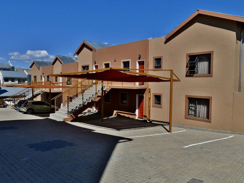 Easy urban living with secure community spirit in established Otjomuise, Windhoek — private balcony for morning sun, two bedrooms, shower and single open parking.