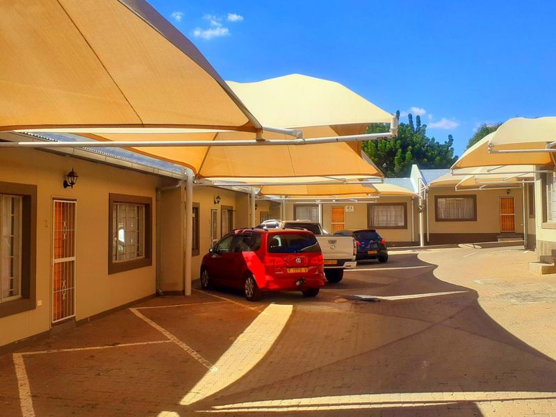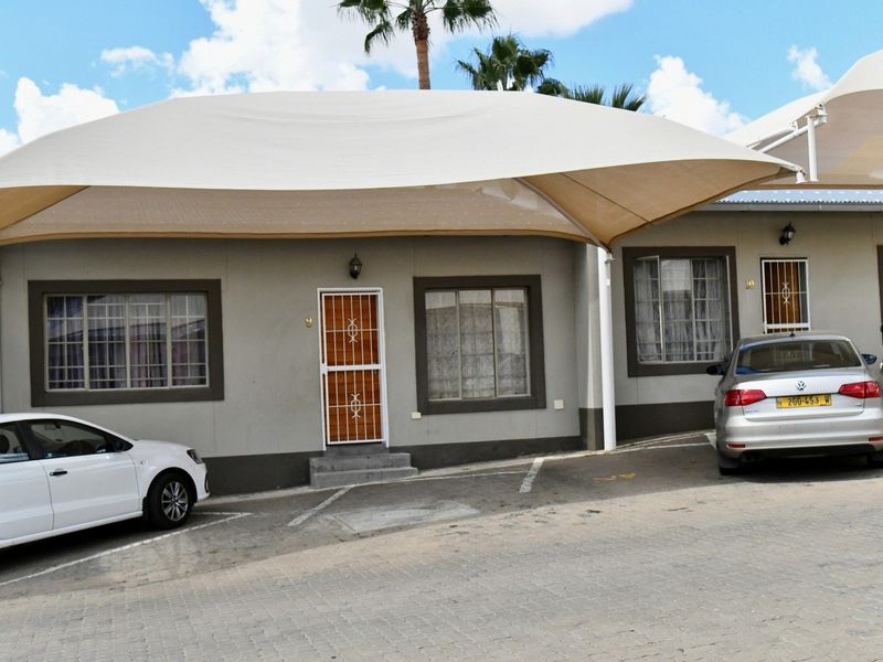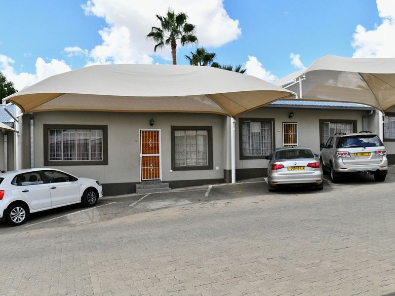 Comfortable ground-floor townhouse in Ext 1 Pionierspark, walking distance to shops; open-plan kitchen and lounge, private courtyard with built-in braai, two beds and one bath.