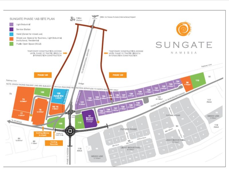 Position your operation for regional reach at Sungate, adjacent to Hosea Kutako Airport and the Trans-Kalahari Corridor — 2,432 m² light-industrial parcel ideal for logistics.
