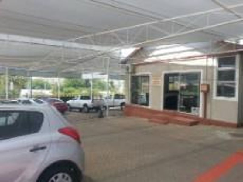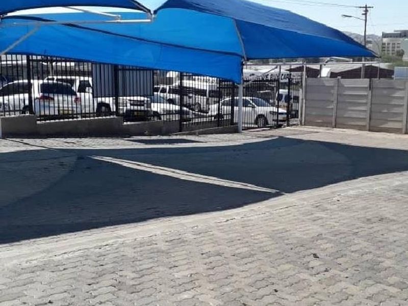 Prime high-visibility commercial stand with versatile offices and large paved yard ideal for a car dealership; secure electric fencing, alarm system and year-to-year tenant paying N$60,000/month.