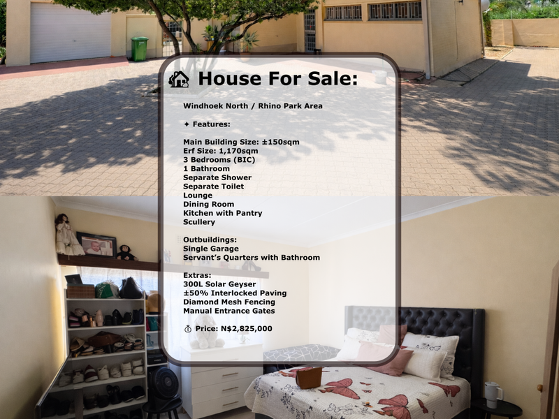 Enjoy flexible Windhoek North living on 1,170m² with income-ready outbuildings and spacious outdoor areas — three bedrooms, single garage, and separate servant's quarters.