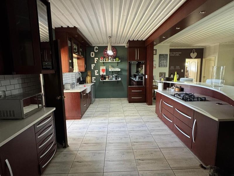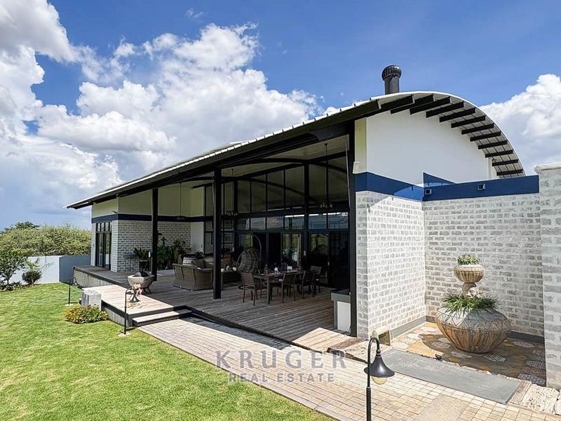 Entertainer’s paradise overlooking the Kunene mountains, offering seamless indoor–outdoor living with a 70m2 deck, sunken jacuzzi and built-in BBQ; three ensuite bedrooms and triple garages.