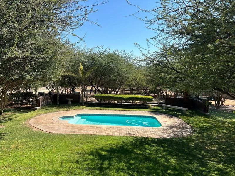 Live, entertain and work in central Outjo, ideal for hospitality or offices, featuring a huge backyard entertainment area with BBQ and dance floor, six ensuite bedrooms and rental offices.