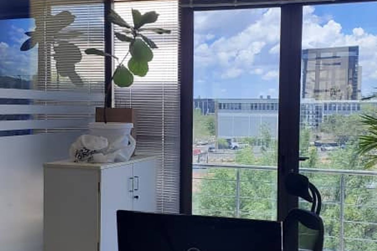 The first floor offers a professional reception area to greet visitors, along with another well-equipped boardroom for larger gatherings. Enjoy the privacy of glass-partitioned offices, complemented by a kitchenette and ablution facilities for added convenience. Step out onto the balcony to take in serene views of nature, providing an inspiring backdrop for your workday.