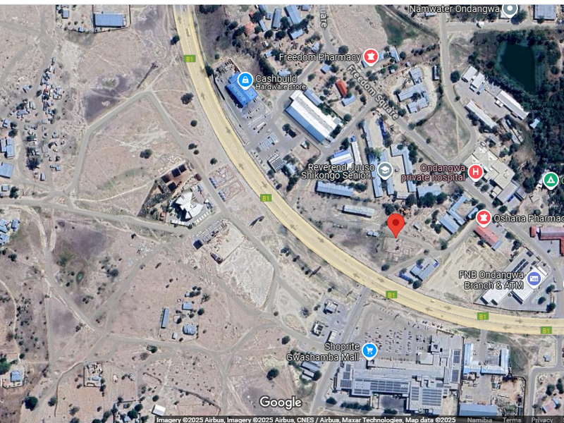 Build a thriving commercial hub in Ondangwa’s energetic CBD, steps from Time Square Mall, Choppies and the market — high-visibility 5,767m² plot perfect for offices, retail or medical.