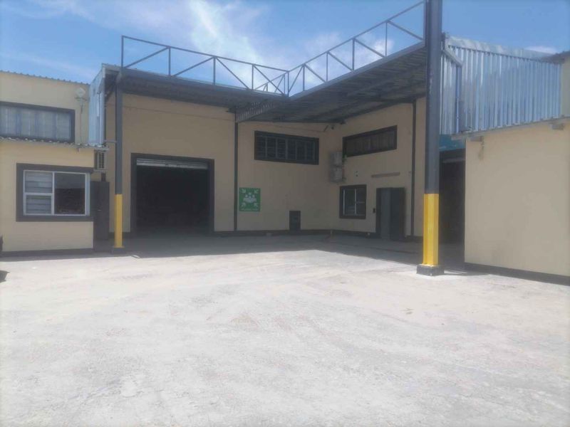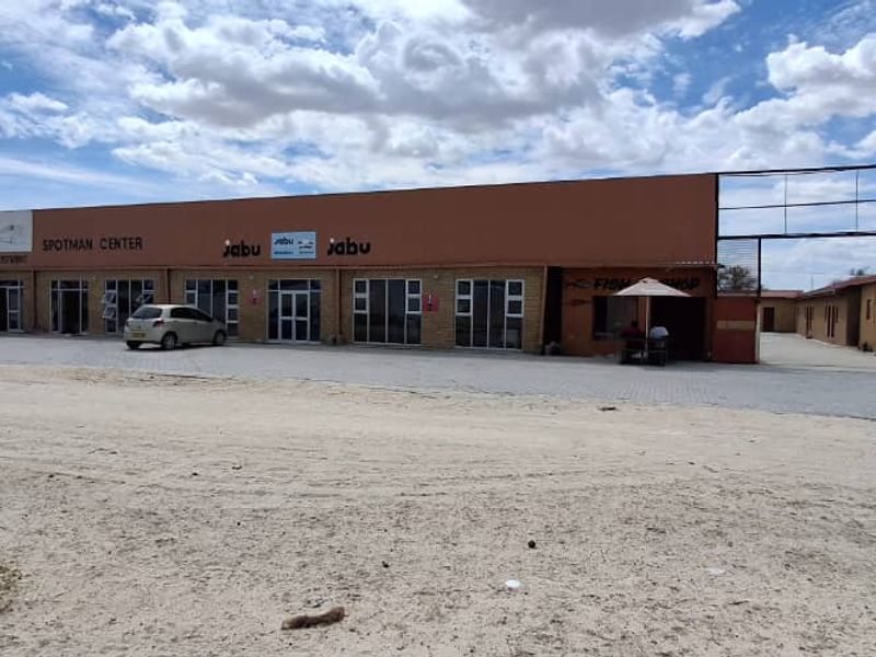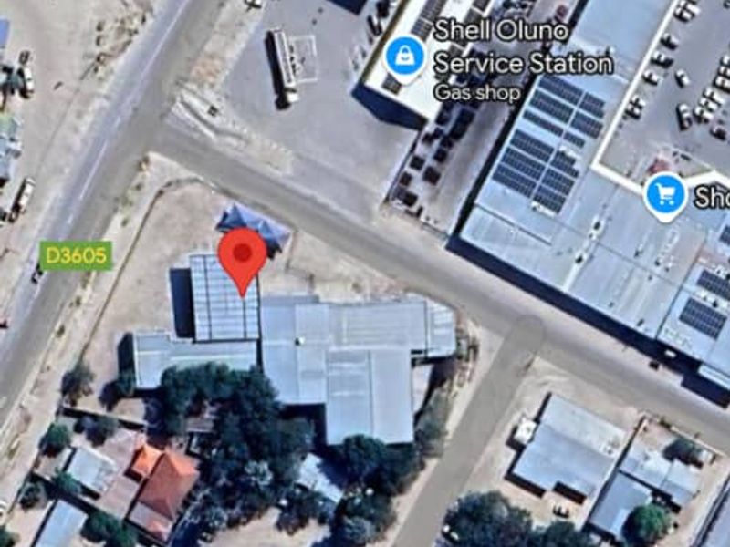 Commercial building in Ondangwa's industrial area, 915 sqm, includes office space, storeroom, parking, and convenient amenities.