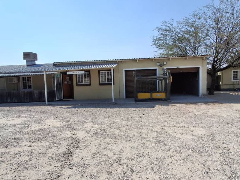Industrial plot in Ongwediva for sale, featuring offices, workshops, 3-phase electricity, boundary walls, electric fence, and various amenities.