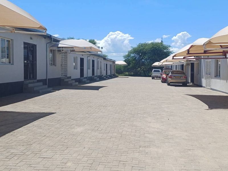 Enjoy mall-side living in Smarties, Okahandja with easy city access and a peaceful rear position. Open-plan kitchen with built-ins, two bedrooms, one bath and carport.
