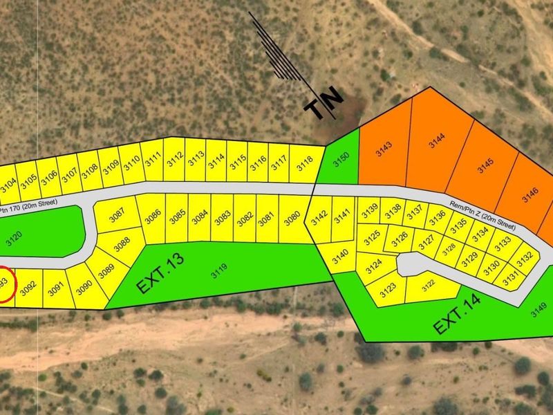 Embrace country living near Okahandja — 6.83ha corner plot on tarred D1972 to Gross Barmen with mobile-phone controlled gate, utilities to gate and stock-proof fencing.