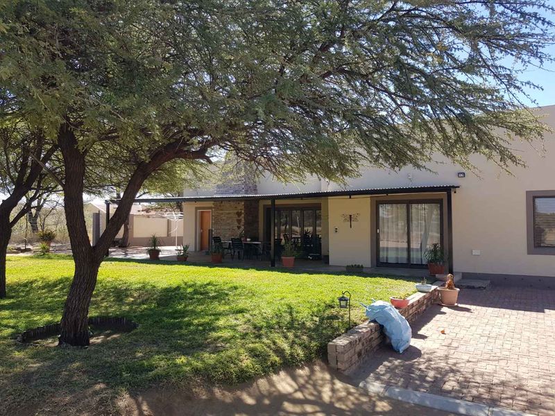 Peaceful rural living between the eastern Okahandja rocky outcrops with expansive yard ideal for gardening and fruit trees, secure fenced property with water tanks. Three bedrooms, two bathrooms, double garage.
