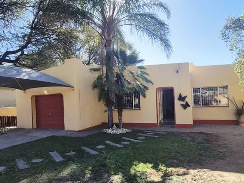 Spacious family retreat in Okahandja on expansive 2,612 m² erf, ideal for entertaining with self-contained flat and five netted carports; two bedrooms, two bathrooms and double garage.