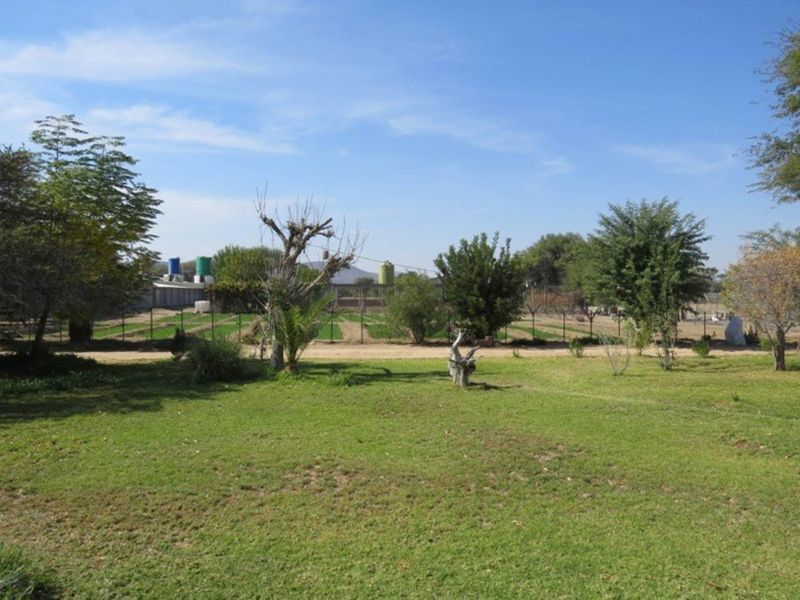 Smallholding with waterhole, fenced estate, and livestock permitted; 30 km from Okahandja towards Karibib. Foreign investment allowed.