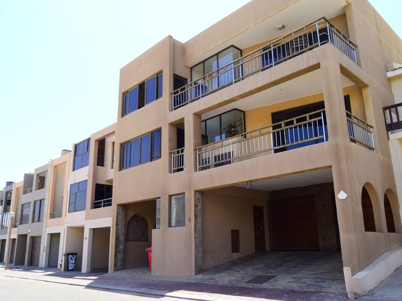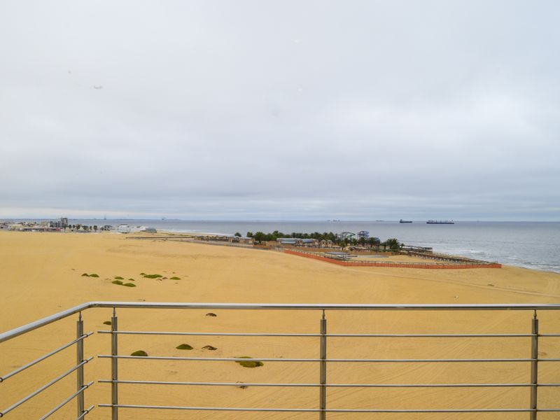 Enjoy desert-dune mornings and Atlantic sunsets at Sunset Sail penthouse, with panoramic ocean views, indoor built-in braai, modern granite kitchen — three bedrooms, 2.5 baths, double garage.