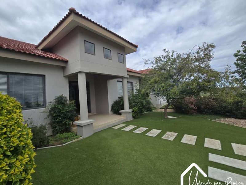 Country-estate living in Finkenstein Estate near Windhoek, with wildlife on your doorstep, hiking trails, private gardens and an indoor heated pool with automated louvre cover and solar panels.