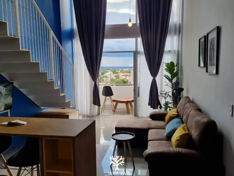City-centre loft living in Freedom Plaza — ideal for professionals or investors with active Airbnb potential, mezzanine bedroom, open-plan kitchen, lift access and basement parking.
