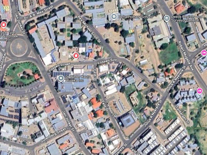 Vacant commercial land in Windhoek Central, 1,124 m², ideal for retail or mixed-use development.