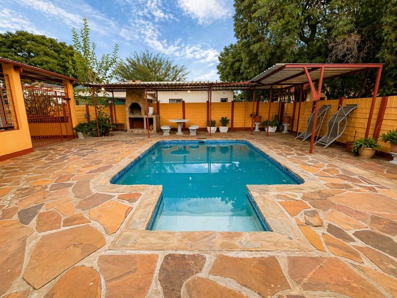 Entertainer's family retreat in Pionierspark, Windhoek, in an established neighborhood close to schools and shopping; features lapa, pool and income-generating flat, garage included.