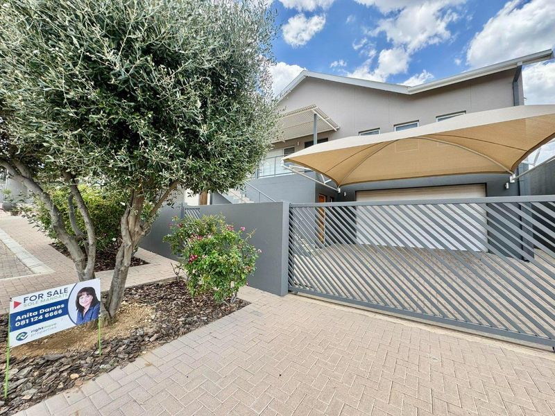 Resort-style living in Elisenheim Lifestyle Estate with secure, landscaped surroundings and easy access to Windhoek — solar-heated pool, three bedrooms, two bathrooms and double garage.
