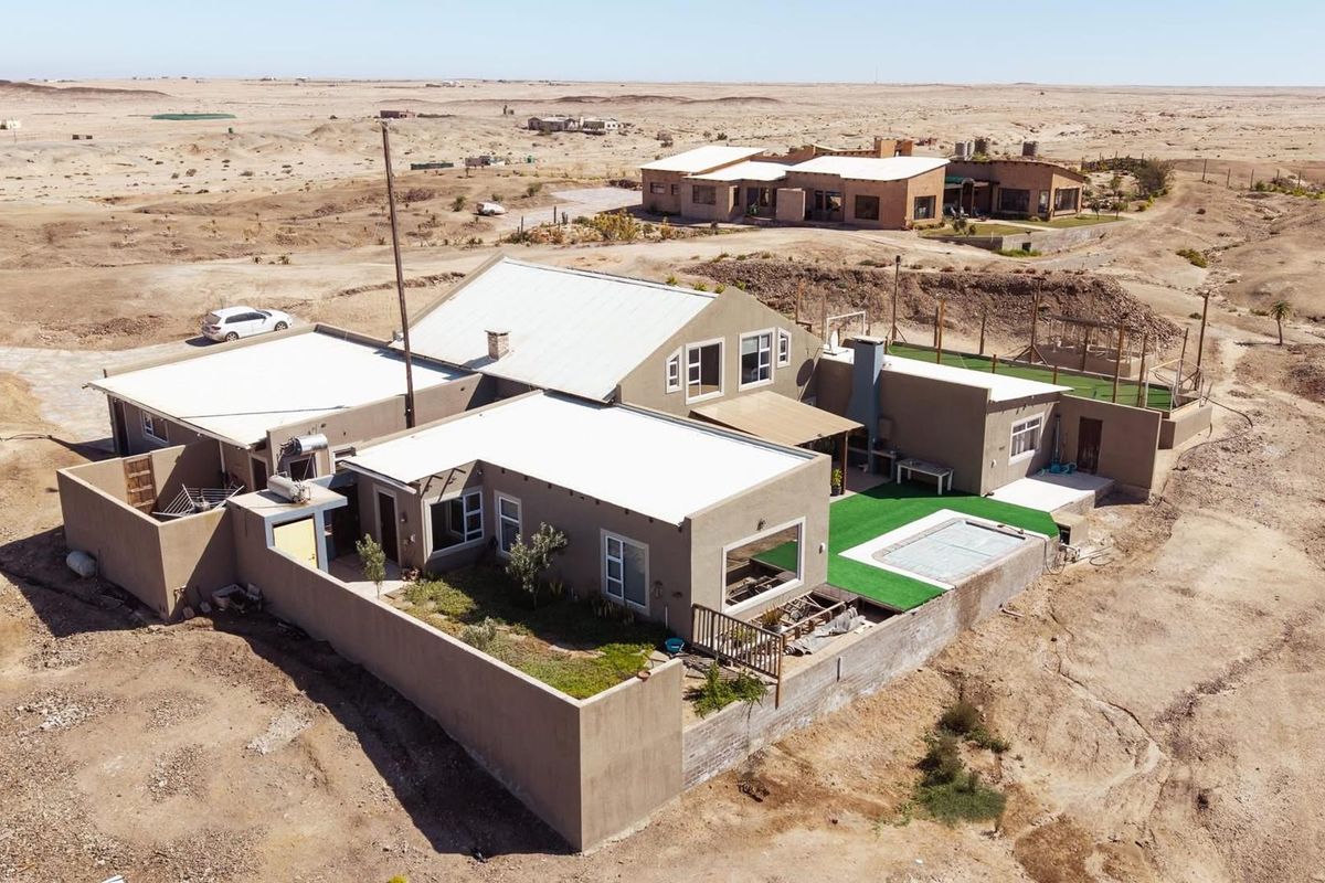 Escape to a private desert retreat on 10 hectares by Dorob and Namib-Naukluft parks, with two homes, heated pool with panoramic views and a multi-use sports field.