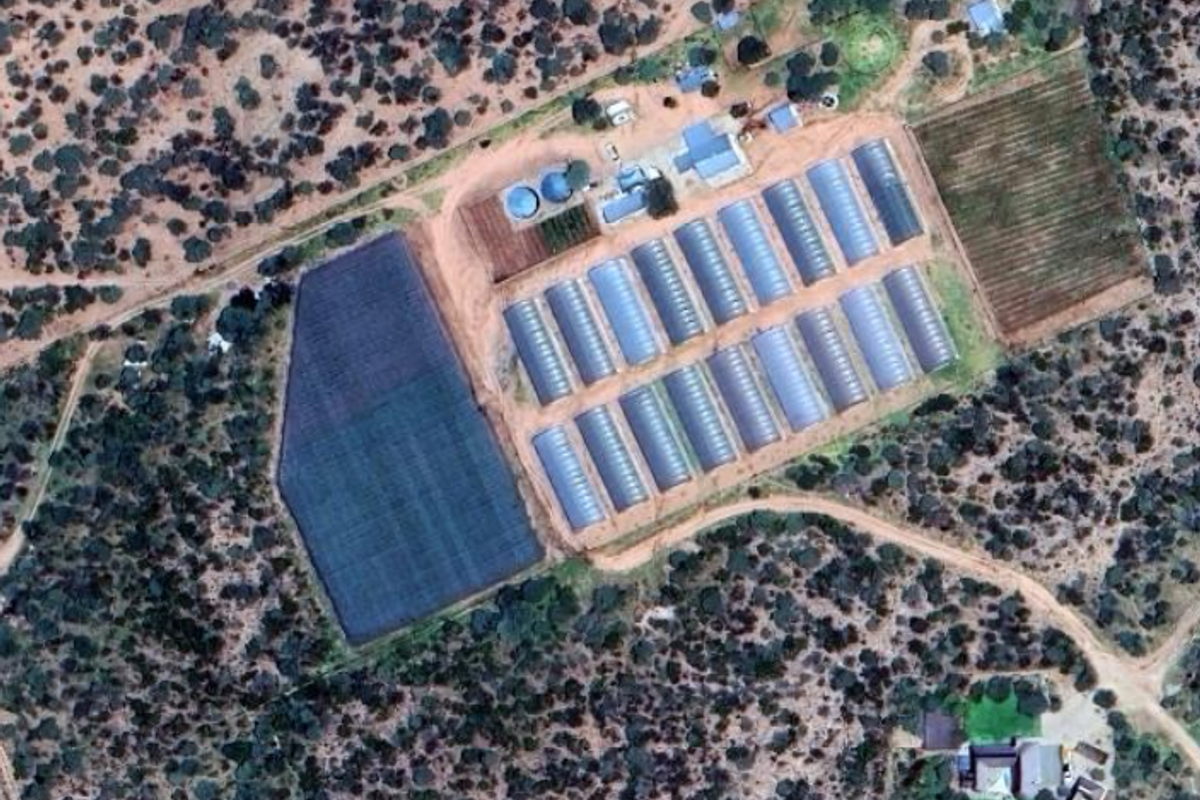 The property in Okahandja district includes 18 greenhouses, a main residence, a flat, a foreman house, and various amenities.