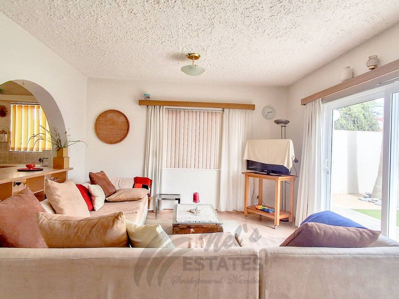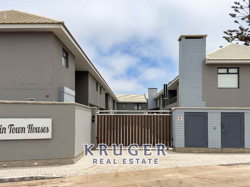 Coastal Swakopmund townhouse offering modern open-plan living, a fitted kitchen and indoor BBQ for entertaining, plus communal gardens. Includes master en-suite, 3 bedrooms, 2 bathrooms and double garage.