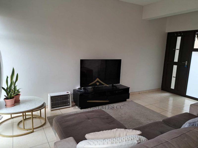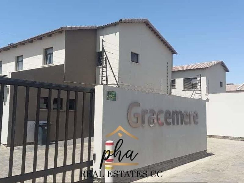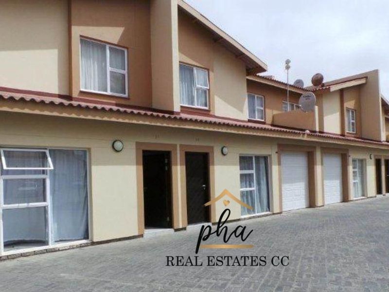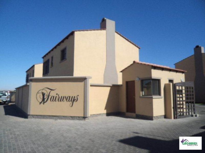 Hands-off investment in Fairway Estate with steady N$9,000 monthly income — double-story townhouse offering open-plan living, indoor BBQ and storage, two bedrooms, two bathrooms and double garage.
