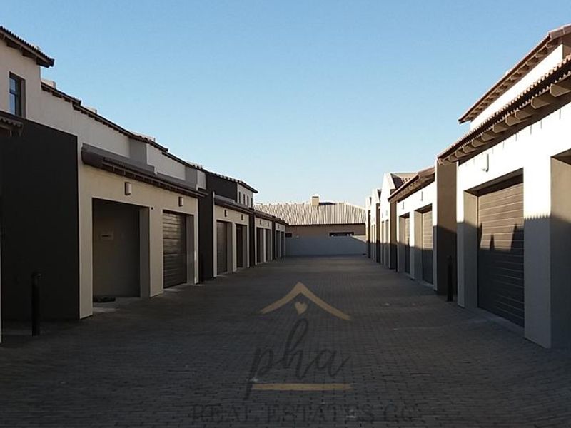 2-bedroom, 1-bathroom duplex townhouse, 107 m² floor size, 250 m² land size, single garage, courtyard. Levies N$1300 pm.