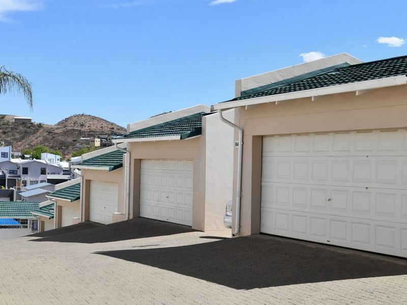 Contemporary townhouse living in Windhoek's desirable suburb, minutes from Grove Mall and Lady Pohamba Hospital — private swimming pool and braai, three bedrooms, two bathrooms, single garage.