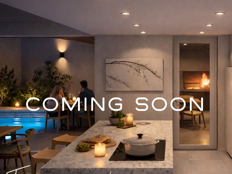 Entertain year-round from a massive enclosed bar and BBQ with keg tap and fold-away doors in desirable Kleine Kuppe. Includes plunge pool, designer kitchen, three beds, two baths.