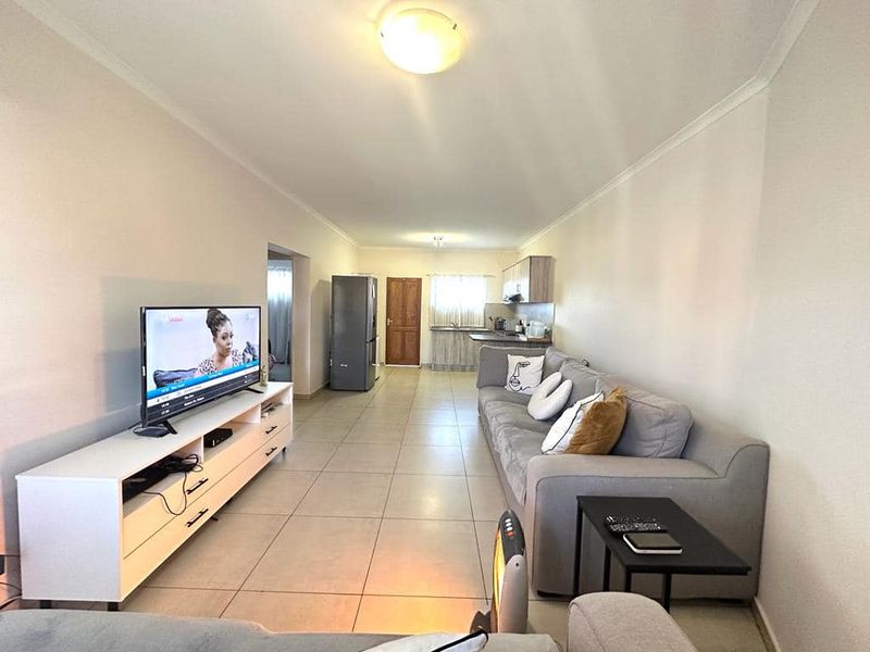 Effortless suburban living near Rocky Crest shopping and schools, with a spacious private courtyard and braai area — two bedrooms, one bathroom, and shaded parking for two cars.
