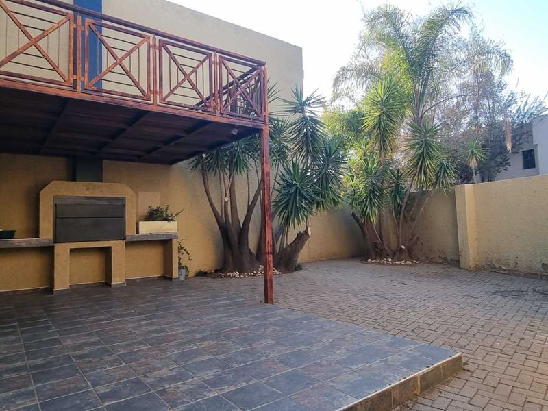 3 bedrooms, 2 bathrooms townhouse with double garage and private entertainment area in secure Windhoek estate.