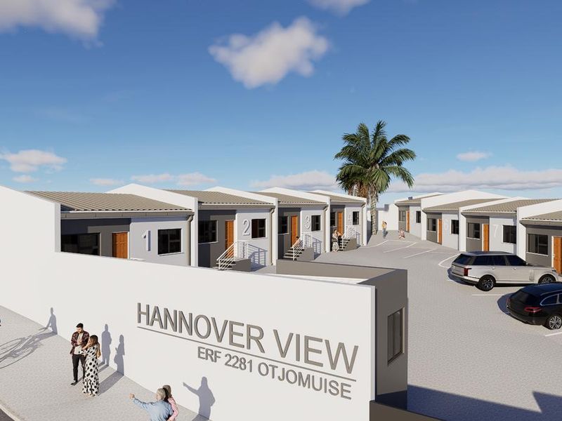 Low-maintenance lock-up-and-go living in new 11-unit Hannover View, Otjomuise Ext 4 — close to amenities. Private courtyard, open lounge and kitchen; two bedrooms, one bathroom, covered parking.