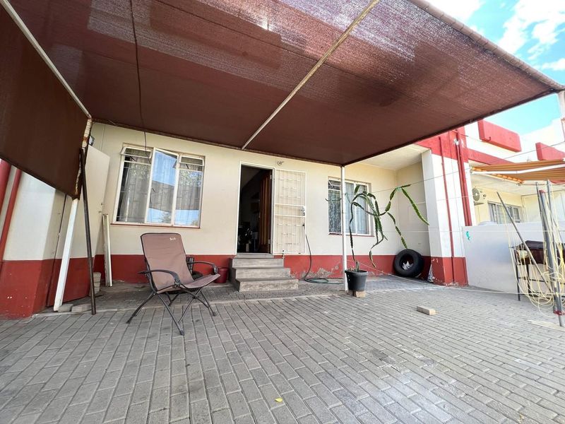Ground-floor Nu Murati unit steps from Eros Mall and eateries, with open-plan living, private courtyard and two shaded carports. Tenant in place at N$8,800/month; three bedrooms, one bath.