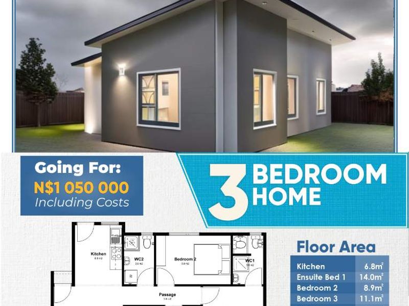 Easy-care suburban living in Otjomuise Ext 4, close to local shops and schools — courtyard for outdoor entertaining, open lounge and kitchen, two bedrooms, one bathroom, covered parking.
