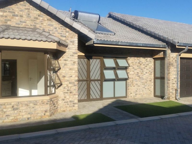 Townhouse with 2 bedrooms, 2 bathrooms, and a double garage. Includes garden and braai area. Close to schools and shops.