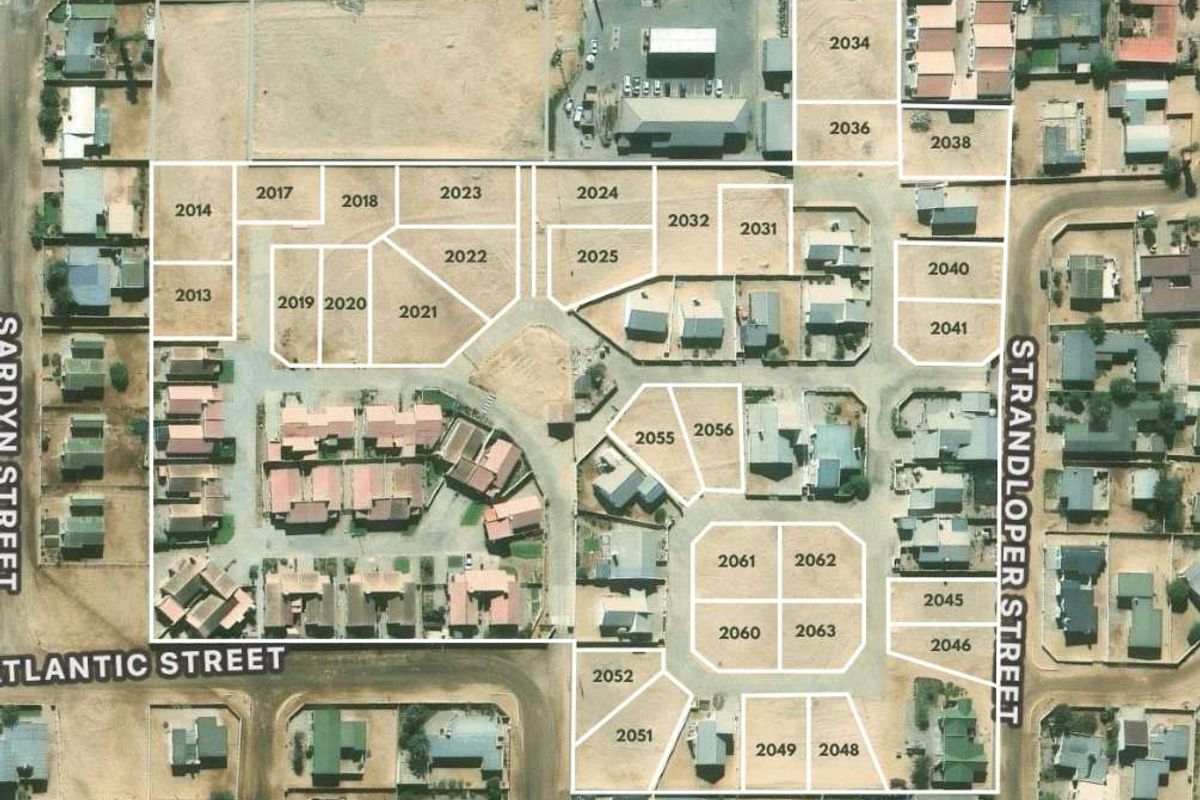 A centrally located development in Henties Bay presents 27 vacant residential plots for sale — ideal for those looking to build their own coastal home.