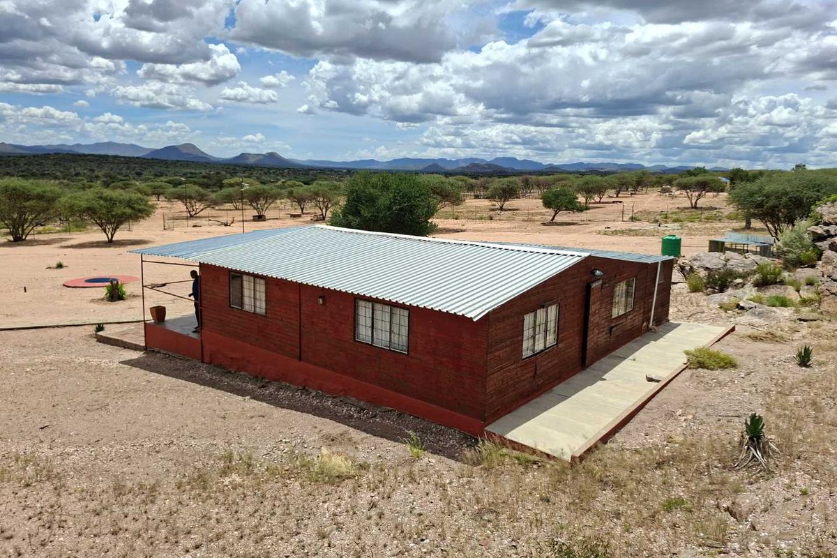 Tranquil country retreat 40 km from Windhoek, set on 4 hectares with panoramic views; 2-bedroom, 1-bath wooden home ideal for off-grid living.