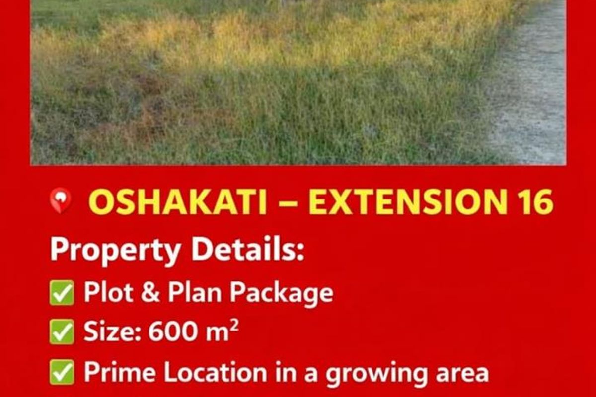 Create your ideal family lifestyle in growing Oshakati Extension 16, close to schools and shops — a 600 m² plot-and-plan offering ample space for a garden and pool.
