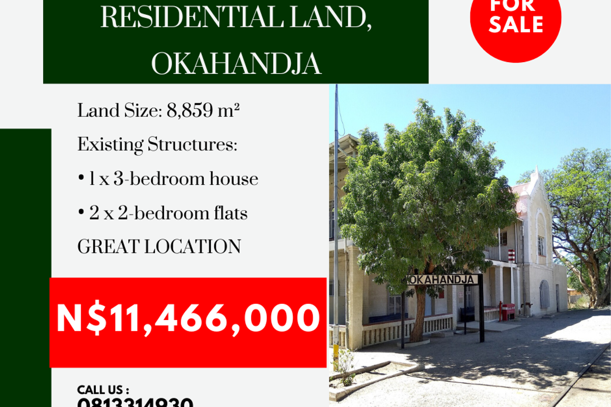 Investment opportunity in Okahandja: 8,859 m2 land with 1 x 3-bedroom house and 2 x 2-bedroom flats.