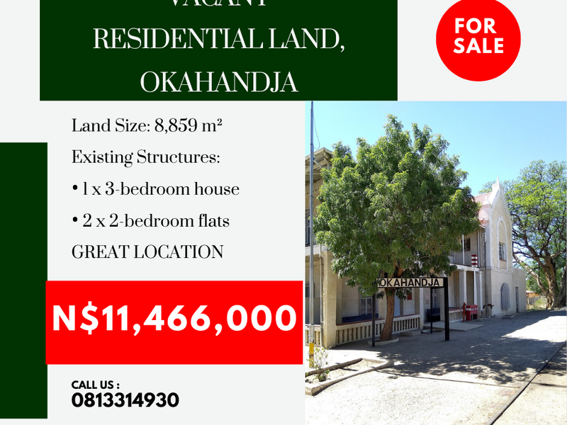 Investment opportunity in Okahandja: 8,859 m2 land with 1 x 3-bedroom house and 2 x 2-bedroom flats.