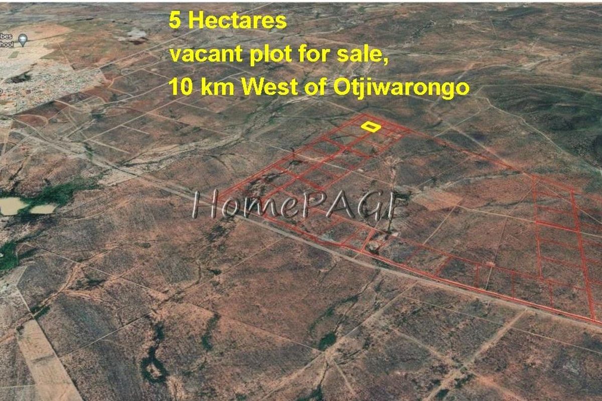 Vacant 5-hectare rural residential plot, privately registered, no development. Price: N$850,000.