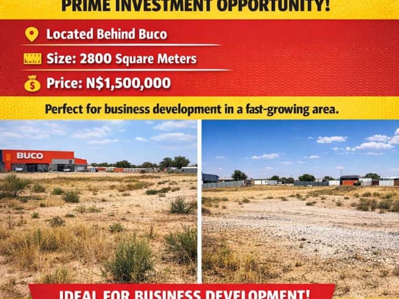 Join Ongwediva's thriving commercial community with a versatile 2,800 m² plot behind Buco, perfect for retail, offices, or mixed-use development.